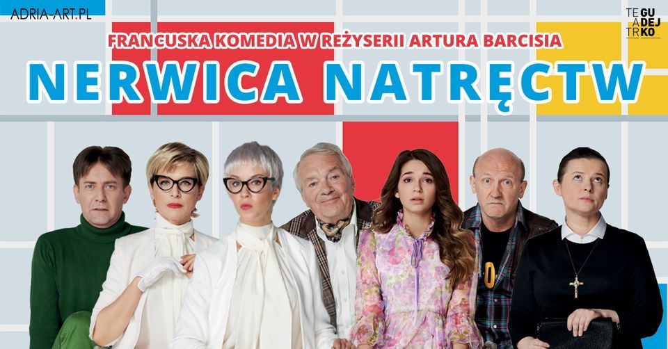 Lekka opowieść o skomplikowanych osobowościach w reżyserii Artura Barcisia. „Nerwica natręctw” to spektakl o tym, co może się wydarzyć, kiedy pacjenci gabinetu psychiatrycznego zaczną leczyć się nawzajem. W poczekalni u genialnego psychiatry zawsze jest ciekawie. Jego pacjenci to osoby zmagające się z takimi problemami jak: niekontrolowane przeklinanie (choroba Tourette’a), przeliczanie wszystkiego (arytmomania), strach przed bakteriami (nozofobia), powtarzanie każdego zdania (palilalia), niemożność stanięcia na linii czy tytułowa nerwica natręctw. Już na co dzień bywa bardzo zabawnie.