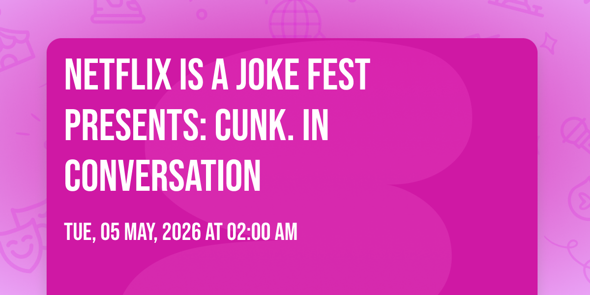 π Location: 34.1014, -118.337π Welcome to Netflix Is A Joke Fest Presents: CUNK. In Conversation, where the impossible becomes possible and dreams take flight! ποΈ Join us at Egyptian Theater in the heart of Los Angeles, CA for an event that will redefine your expectations. π On May 5th, 2026 at 02:00 AM, witness the transformation of space and time into something truly magical. β¨ It's a curated experience combining the best of innovation, entertainment, and community spirit, creating moments that will be remembered for years to come. Whether you're a first-time visitor or a seasoned enthusiast, prepare to be amazed. π Book now to ensure your place in this unforgettable experience!