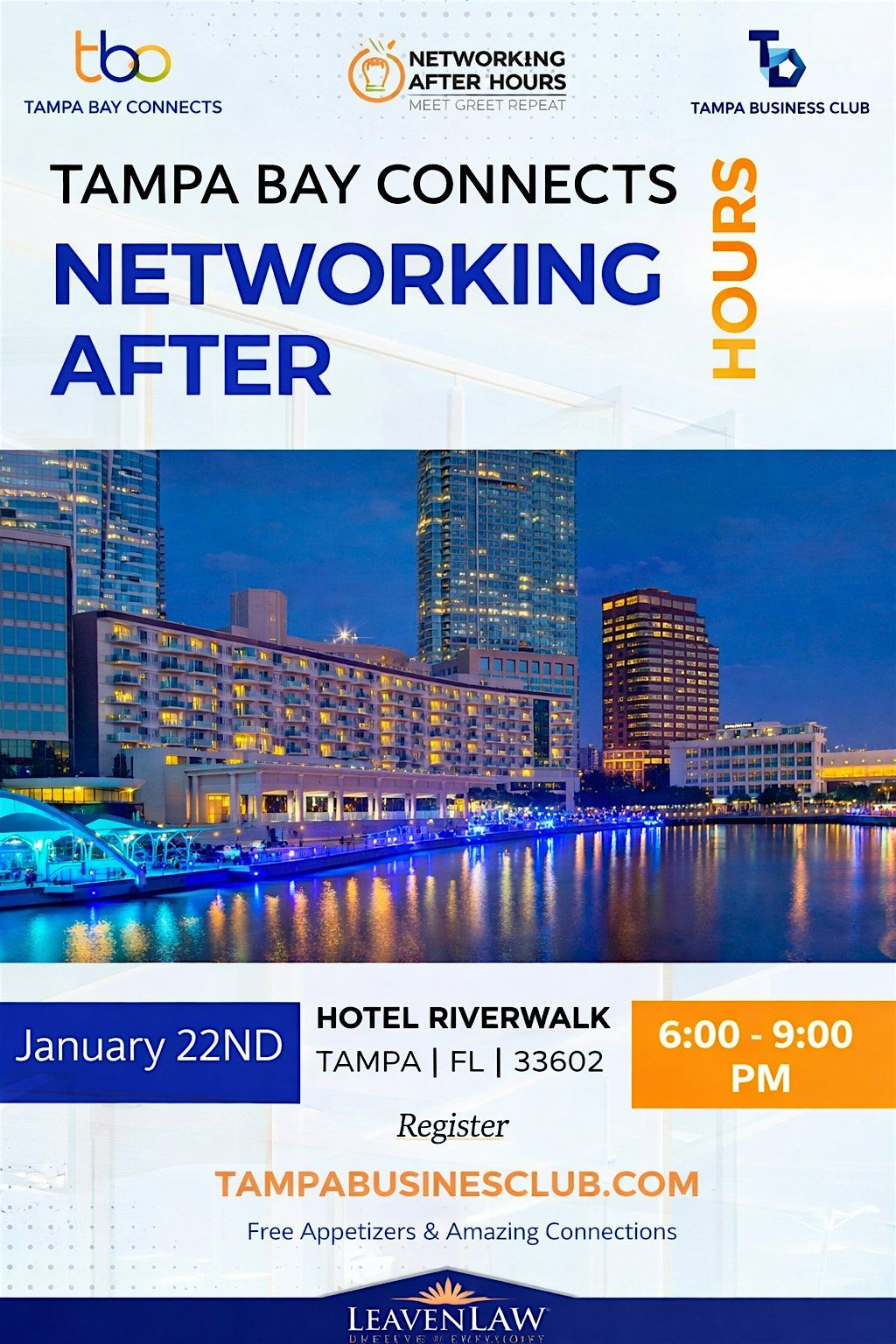 Welcome to Networking After-hours @Hotel Riverwalk! Join us at Hotel Tampa Riverwalk on January 22, 2026 at 6:00 PM for an evening of networking and fun. Connect with professionals in your field, exchange ideas, and build new relationships in a relaxed setting. Don't miss this opportunity to expand your network and enjoy the beautiful surroundings of the hotel. See you there!