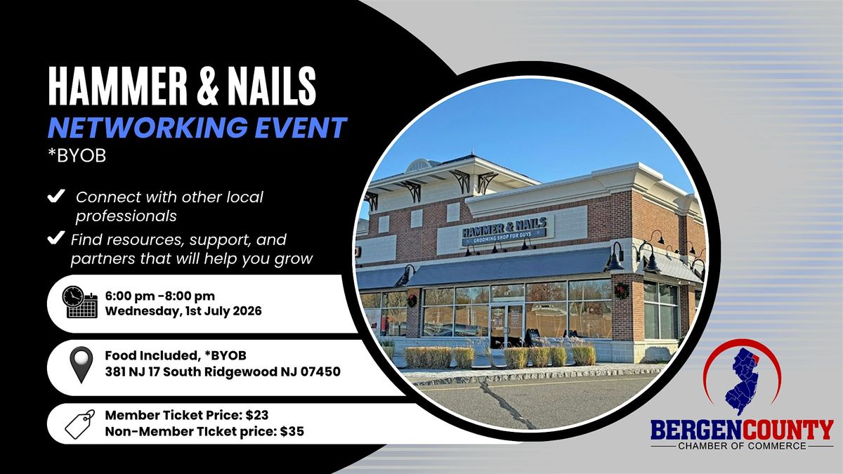 Details: The event will take place July 1st, 2026 from 6:00pm to 8:00pm at Hammer & Nails, 381 NJ-17, Ridgewood, NJ 07450