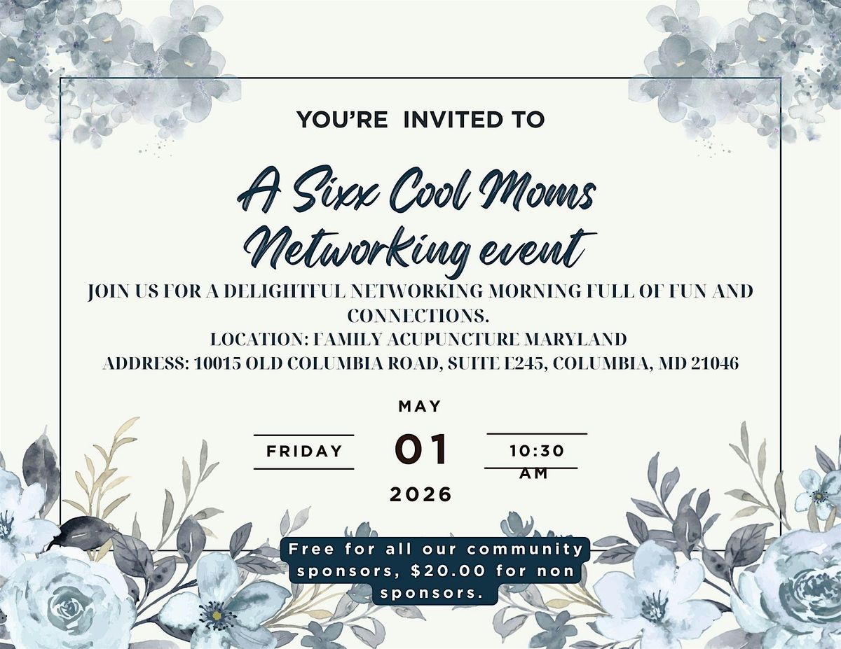 Hey moms! Ready to meet amazing women just like you? Join us for the Networking Event Sixx Cool Moms, an in-person gathering where connections happen, stories are shared, and friendships kick off. Whether you're looking to expand your circle or just have a fun evening out, this is the spot! Grab your favorite drink, bring your smile, and get ready to mingle with some seriously cool moms. See you there!