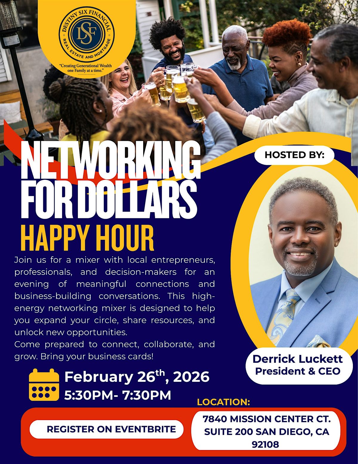 Join us for a fun in-person evening where connections turn into opportunities! The Networking for Dollars Happy Hour is your chance to mingle, share ideas, and meet awesome people in a relaxed setting. Bring your energy, your smile, and get ready to make some valuable contacts. Let’s make those connections count — see you there!