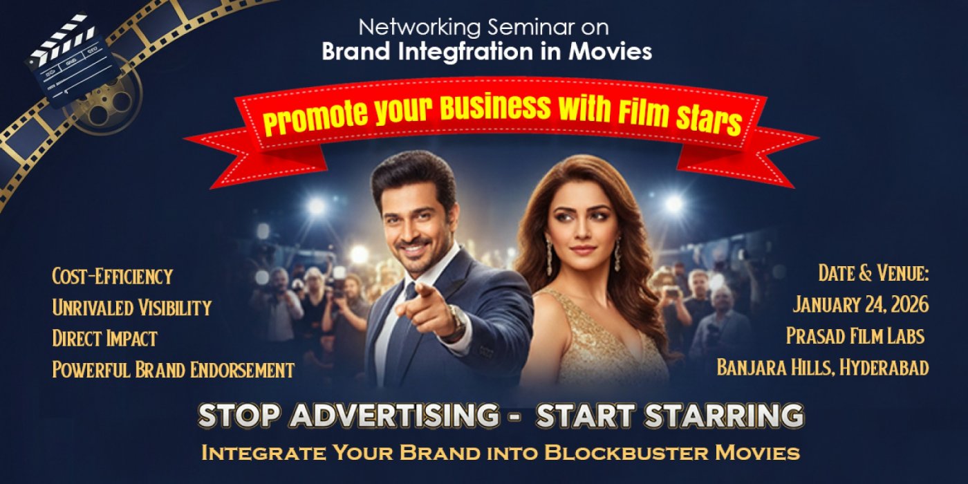 On behalf of Cinetaria Media Works, I am pleased to invite you to an exclusive Networking Seminar on "Brand integration in Movies - Promote your Business with Film Stars" This event is specifically designed for CEOs, MDs, Business Owners, and Marketing Heads who are looking to leverage the massive reach of cinema through strategic brand integration.