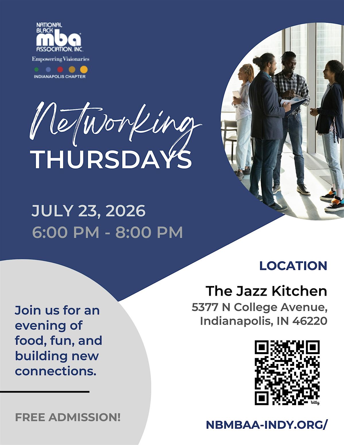 Join the Indianapolis Chapter of the National Black MBA Association, Inc. for the next installment of Networking Thursdays at The Jazz Kitchen. RSVP for this FREE event today.