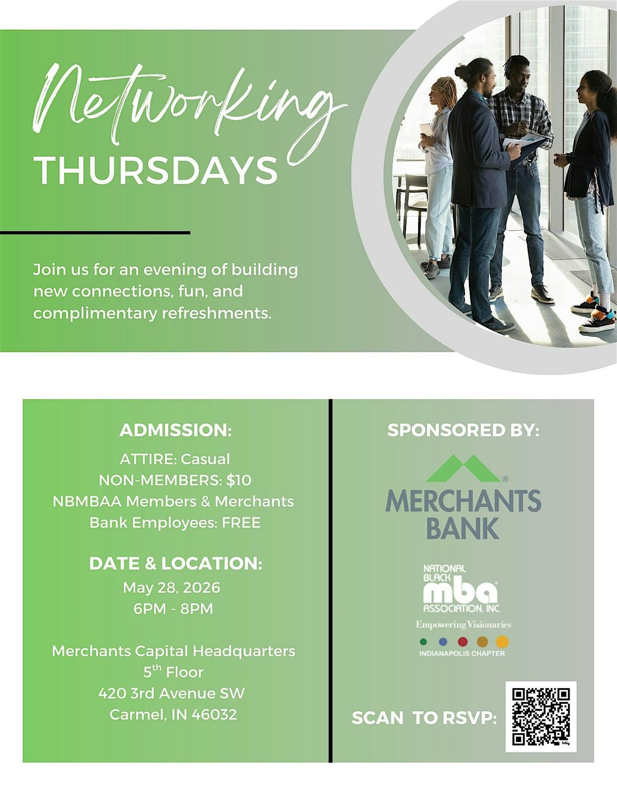 Network with the Indianapolis Chapter of the National Black MBA Association, Inc. and Merchants Bank at our next Networking Thursdays. Enjoy complimentary refreshments while networking with professionals from across the Indianapolis area. Everyone is welcome to attend and RSVP today!
