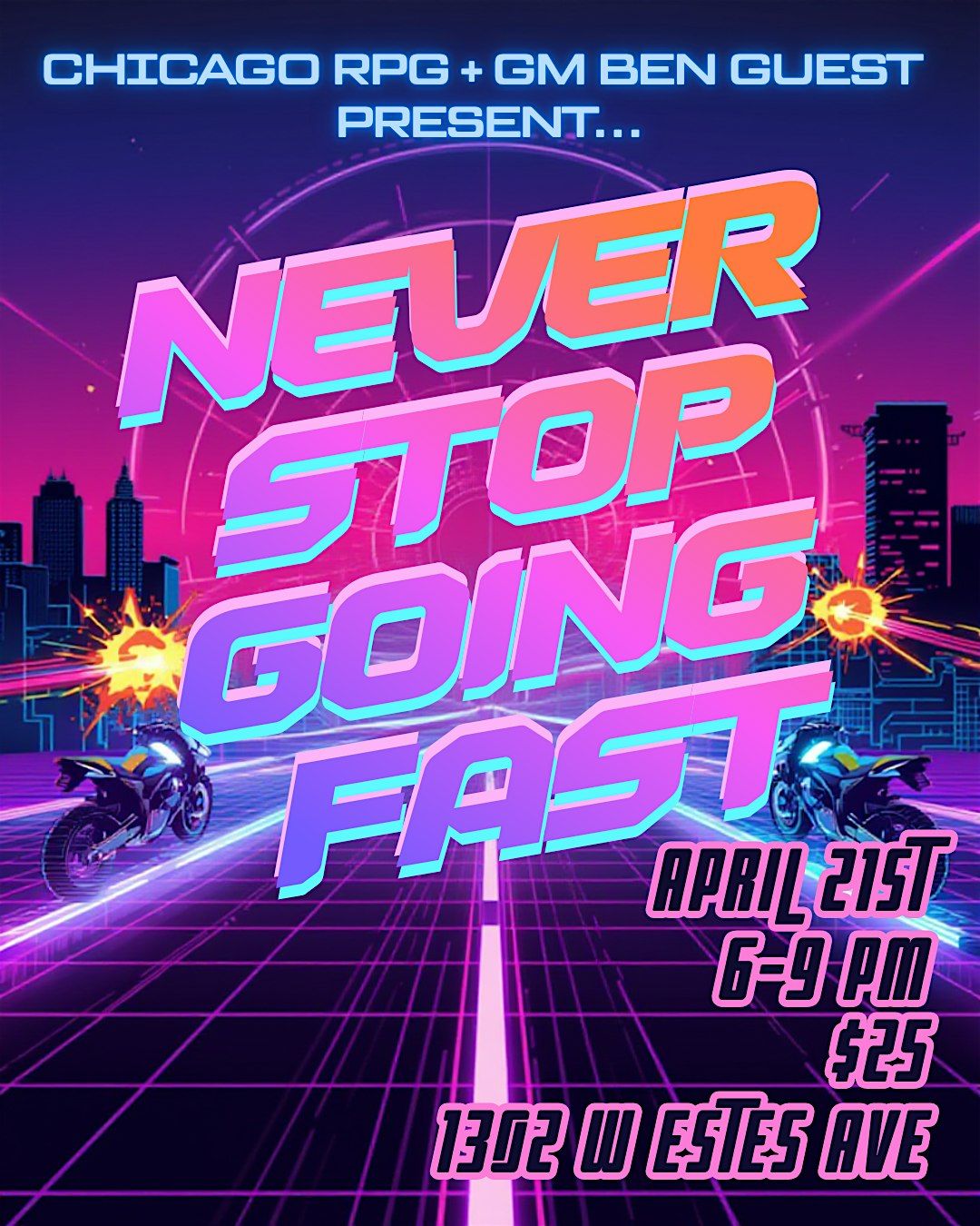 We will be playing Never Stop Blowing Up!, a very simple rule-light system that is fun and chaotic. We will make characters at the beggining of the session. It won't take long.