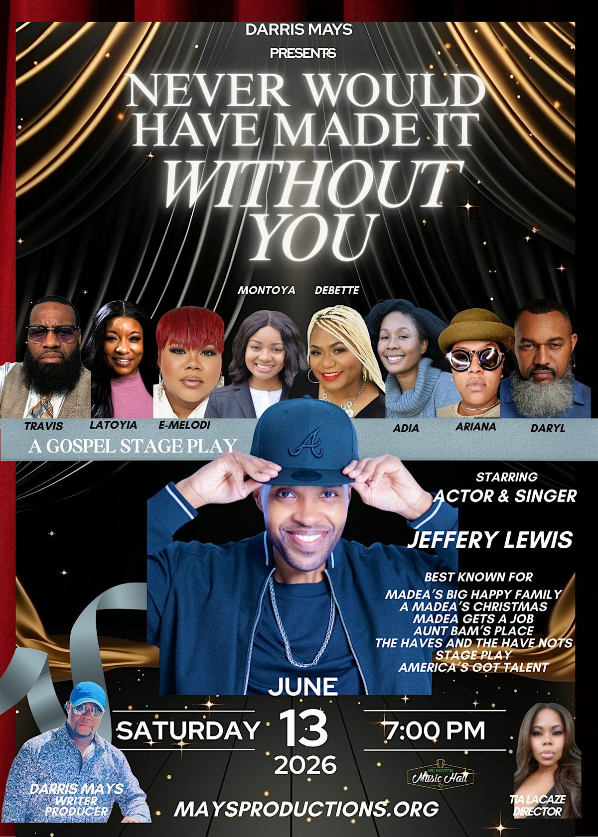 Back by popular demand and more powerful than ever, "Never Would’ve Made It Without You!" is a gripping, emotionally explosive gospel stage play by Darris Mays.