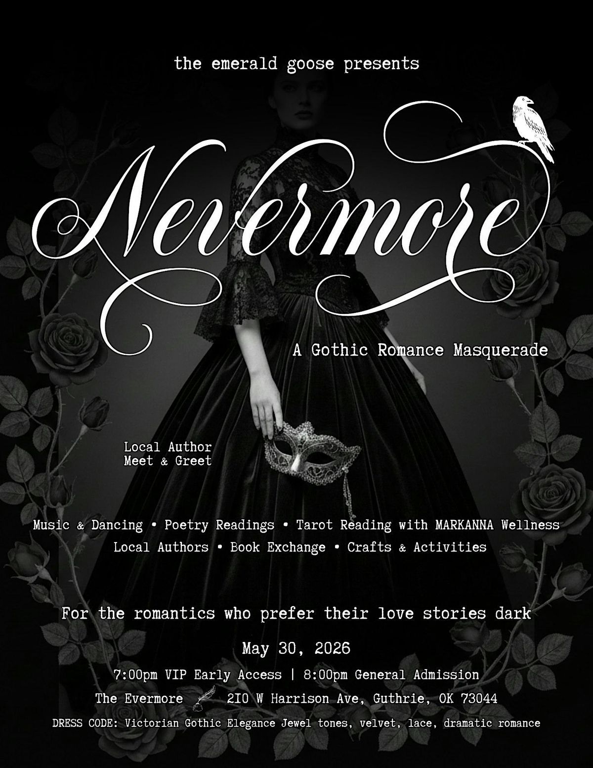 The Evermore Venue, in the heart of Guthrie, Oklahoma, transforms into a gothic manor on May 30th for Nevermore—a masquerade ball for those who prefer their romance dark and their nights atmospheric.