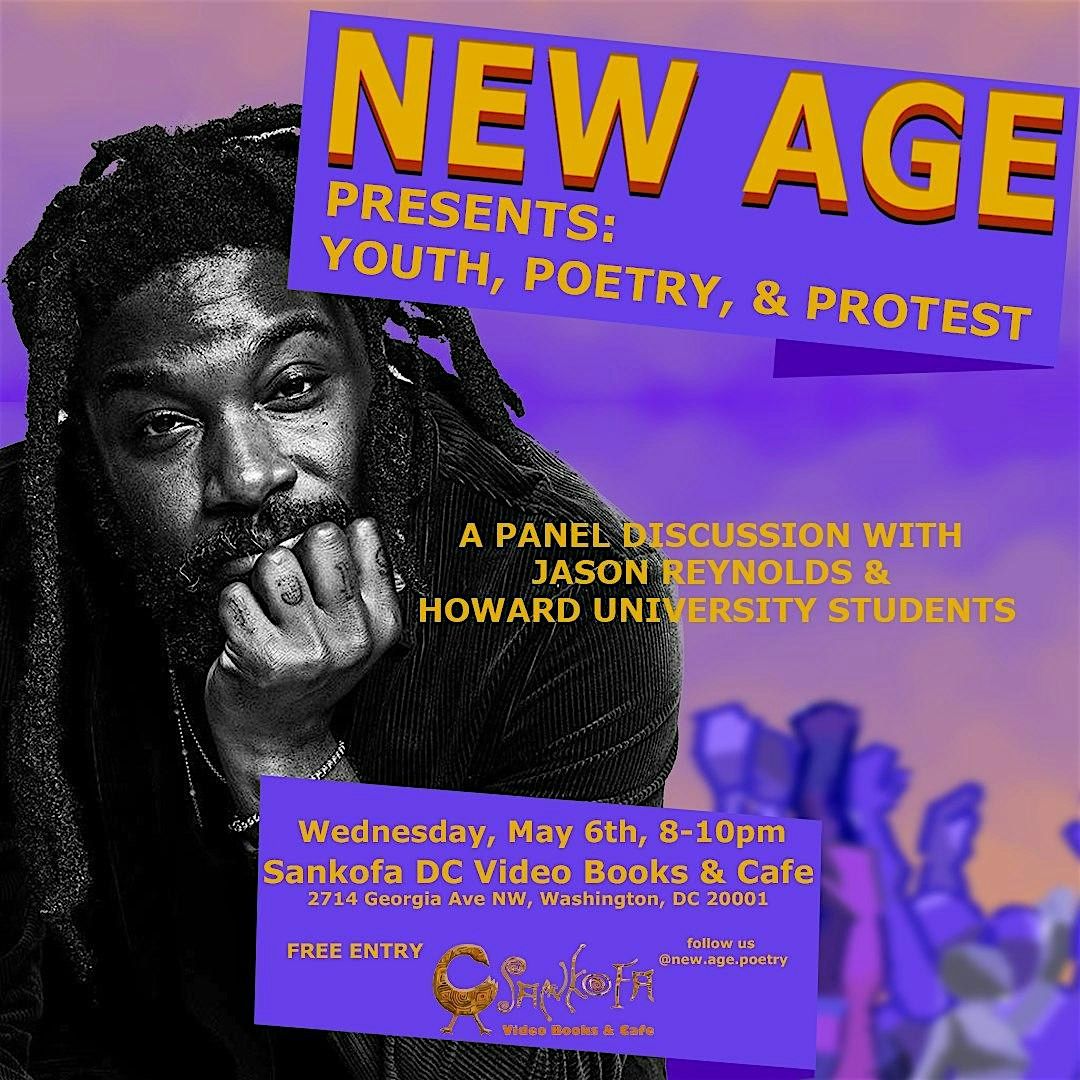 New Age Poetry presents Youth, Poetry, & Protest: an in-depth panel discussion with Jason Reynolds and Howard University students on poetry, the DC Black arts community, and the role of youth in times of protest. After the panel, we will continue the night with an open mic like usual!