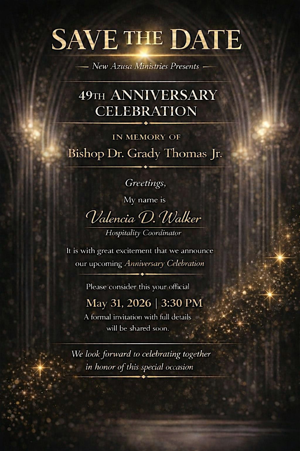 Come experience a spirit-filled celebration as New Azusa Ministries marks 49 years of faith and legacy, honoring Bishop Dr. Grady Thomas Jr.