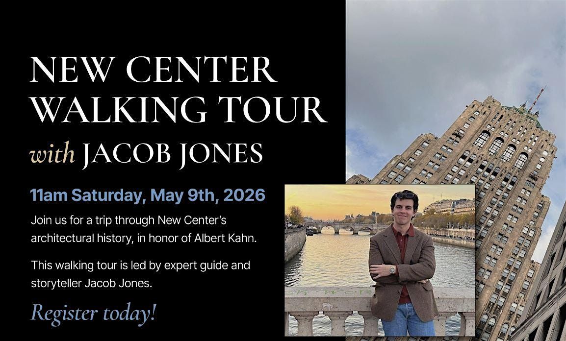 Learn more about the architectural history of New Center on a special walking tour with Jacob Jones. Home to the Fisher Building and Cadillac Place, the area was established in the early 20th Century as a part of the northward expansion of the City of Detroit.