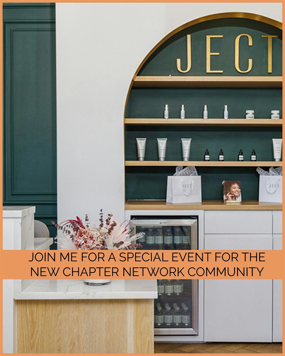 Get ready to refresh your mind and body at our in-person event at JECT, a luxury medical spa! Join us for an evening of great vibes, tasty bites & sips, and some great deals on treatments.