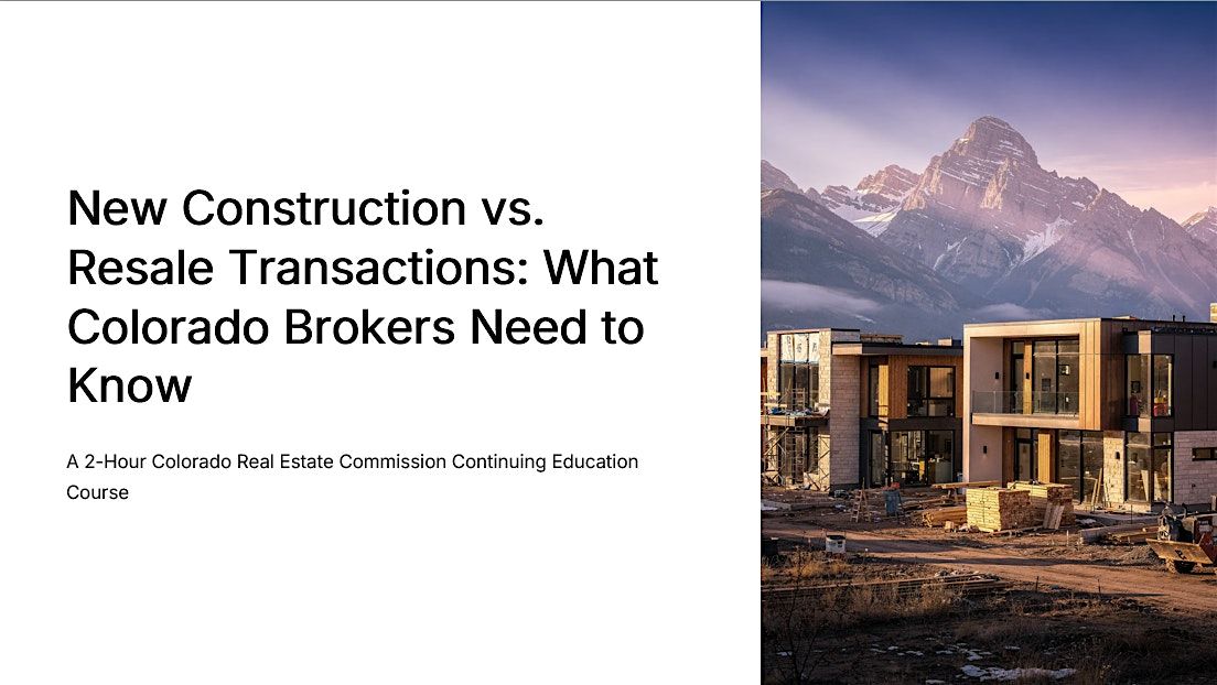 New Construction vs. Resale Transactions - 2 CE for CO Real Estate Agents