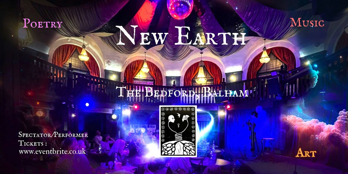 Welcome to New Earth Poetry! We are proud to invite you to join us at The Bedford, Balham for another night of creative expression and inspiration. Our events are a celebration of words, emotions, and the power of poetry. Come and share your own work or simply listen and immerse yourself in the beauty of spoken word. Let your thoughts flow freely and connect with like-minded individuals in the round in the beautiful Edwardian/Baroque environs of The Bedford. Whether you are a seasoned poet or just starting out, everyone is welcome to participate. Let's come together and create something magical through the art of poetry.