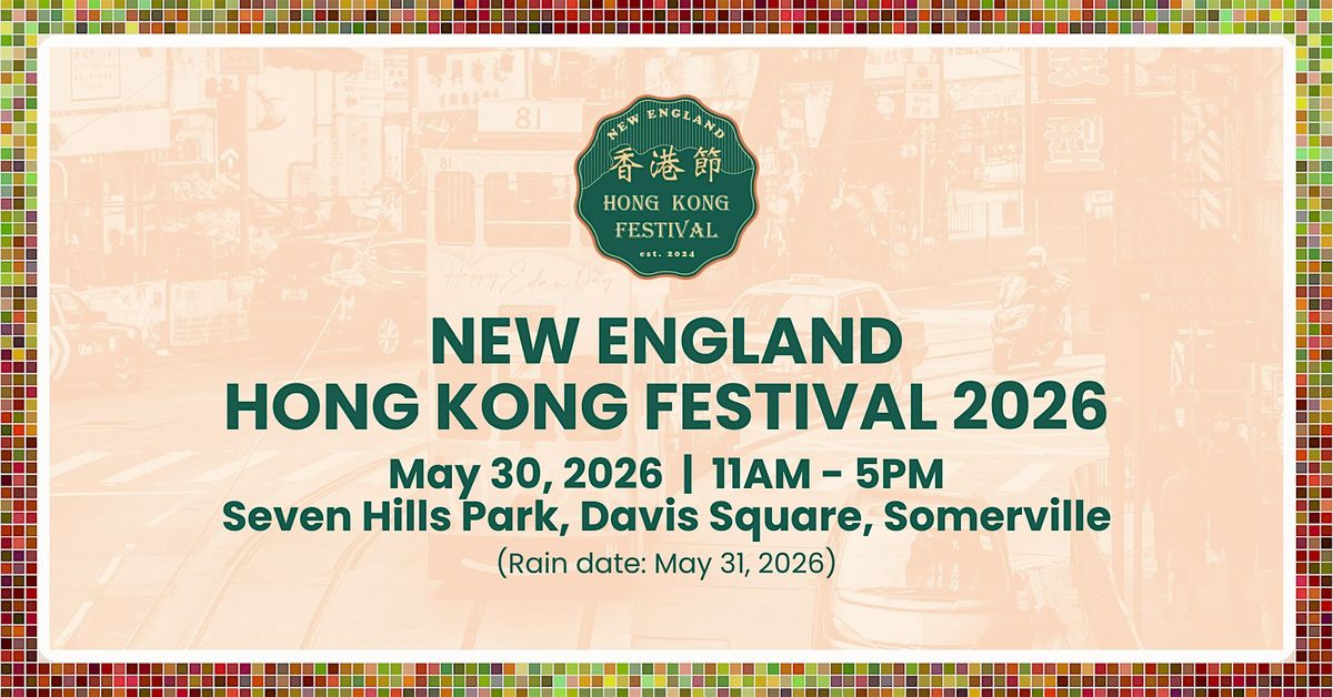 誠邀大家參加5月30日,上午11時至下午5時(雨備日期:5月31日)在薩默維爾 Davis Square 地鐵站旁的 Seven Hills 公園舉辦的第三屆新英格蘭香港節!