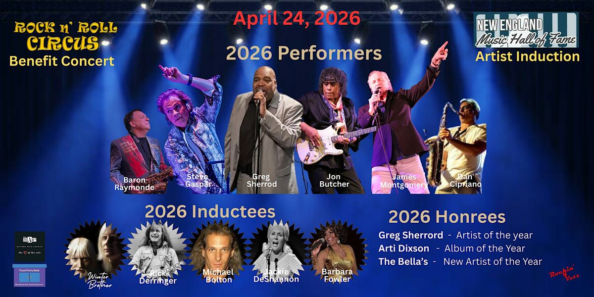 OApril 24 — A show like no other is coming to Parsons Auditorium in Milford, Connecticut. Presented in conjunction with Rockin’ 4 Vets, the Milford Arts Council, and the New England Music Hall of Fame (NEMHOF), this extraordinary evening will combine a benefit concert with the NEMHOF 2026 Induction Ceremony, honoring some of the most influential musicians in New England music history.