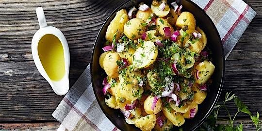 Spend some time in our kitchen exploring the flavors of New England as you make these regional dishes: a rich, creamy chowder; a light, bright salad that makes the most of summer; a thin steak, seared to your taste; your new favorite potato salad; and, to round out the feast, a delightful blueberry dessert.