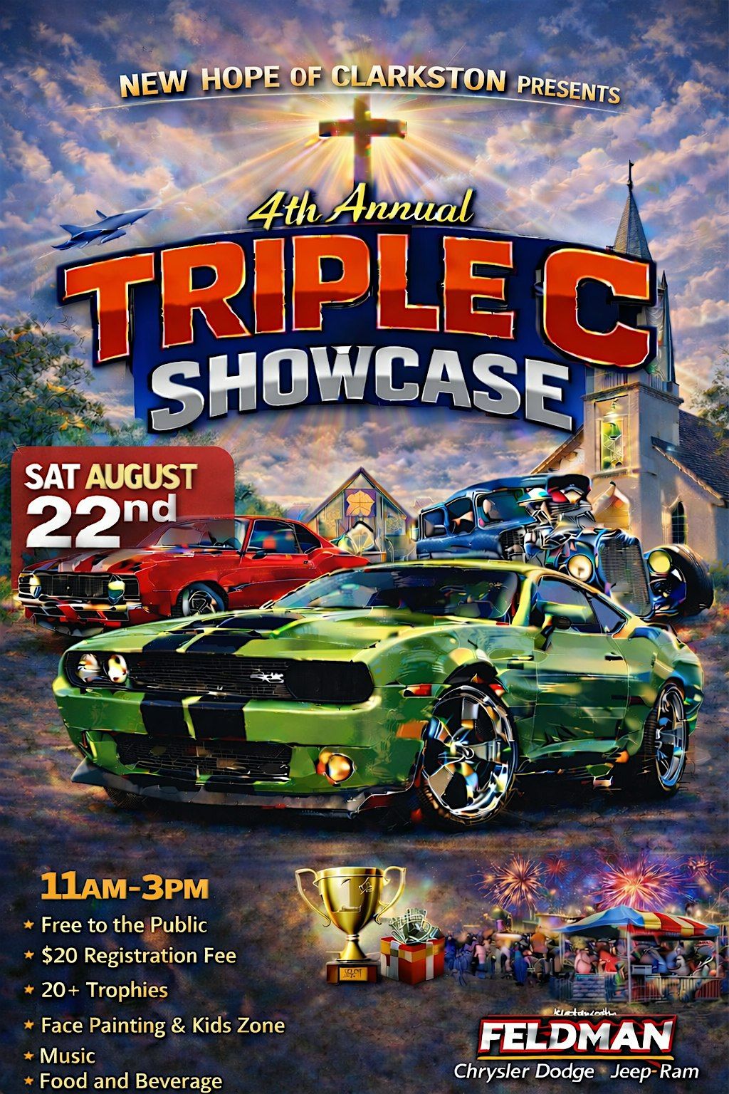 The 4th Annual Triple C Showcase Car Show is back and bigger than ever! Join us for a day filled with incredible cars, great music, food, and family-friendly fun. The Triple C Showcase brings together car enthusiasts from all over to display their pride and joy—from classic cruisers and muscle cars to modern builds and custom creations. With multiple trophies awarded and an amazing atmosphere, this event continues to grow each year. Whether you’re showing your vehicle or just coming out to enjoy the show, the Triple C Showcase is a must-attend celebration of car culture and community