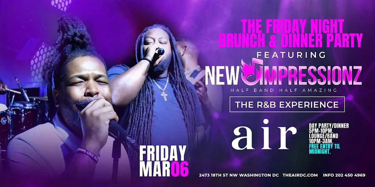Get ready for an awesome night with NEW IMPRESSIONZ rocking the stage at Air Restaurant & Lounge! Join us on March 20, 2026, at 9:00 PM (Eastern Time) for good vibes, great music, and an unforgettable live show. Don’t miss out on this in-person event where the energy will be off the charts!