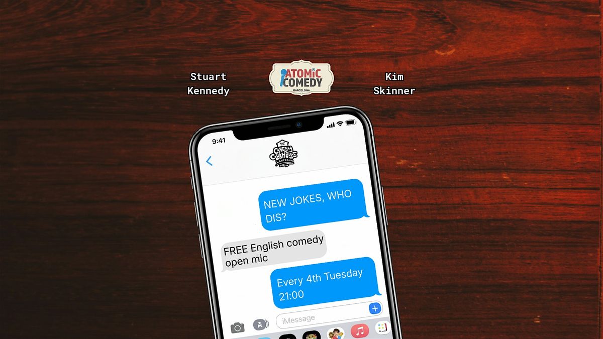 Barcelona comedy power couple Stuart Kennedy (Comedians & Dragons, Hot Juans, Absolute Chaos) and Kim Skinner (AtoMIC Comedy, Big Mic Energy) are passionate about the comedy craft, and LOVE to see their fellow comedians working on new stuff. So they created New Jokes, Who Dis? — an open mic for real comedy fans where you can see pro comedians debuting brand-new jokes.