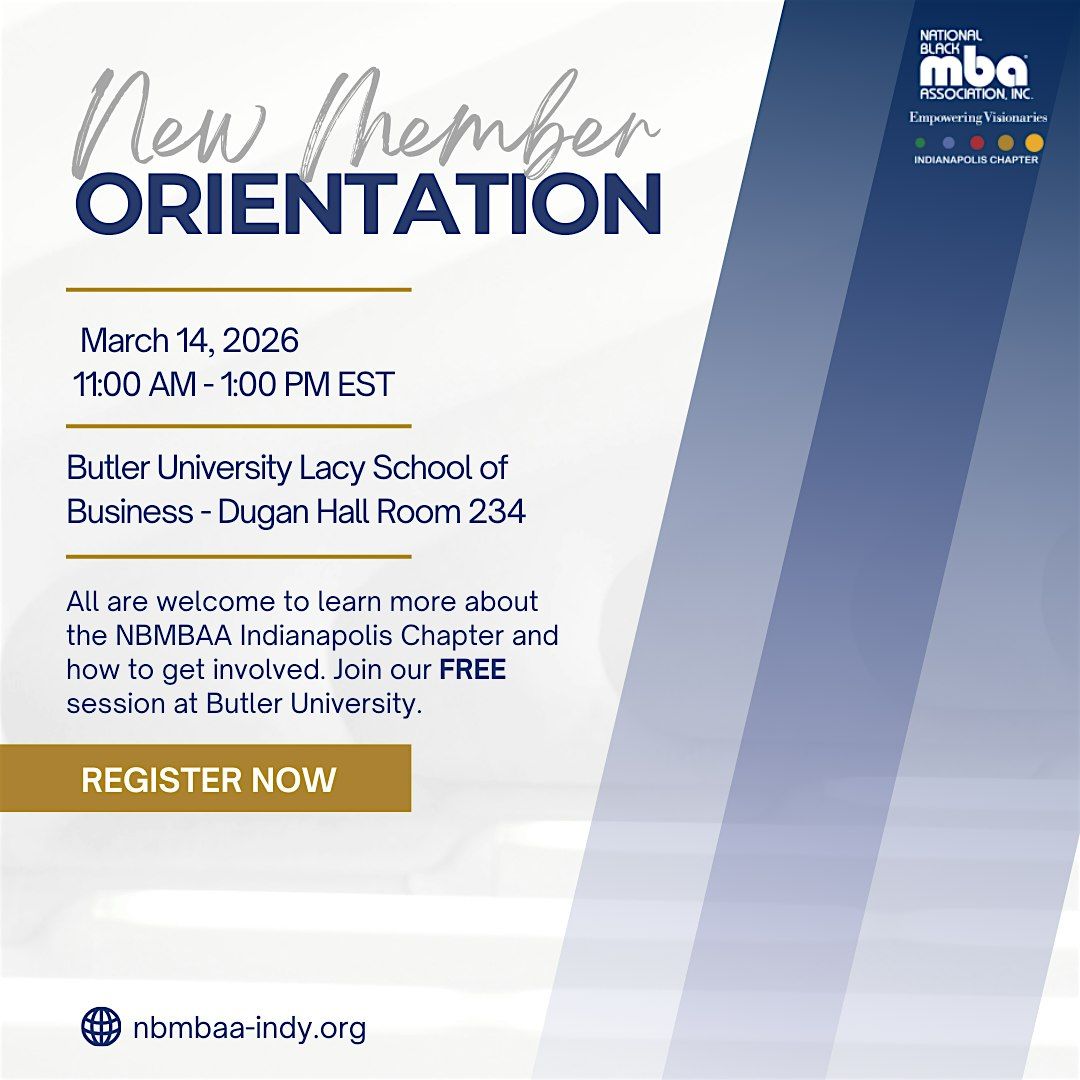 The National Black MBA Association, Inc. (NBMBAA) Indianapolis Chapter will be hosting an informative New Member Orientation at Butler University's Lacy School of Business in Dugan Hall Room 234. This in-person session will provide attendees with the opportunity to learn more about our progamming and how to become an active member of the NBMBAA Indianapolis Chapter. All are welcome to attend and RSVP for this FREE event today!