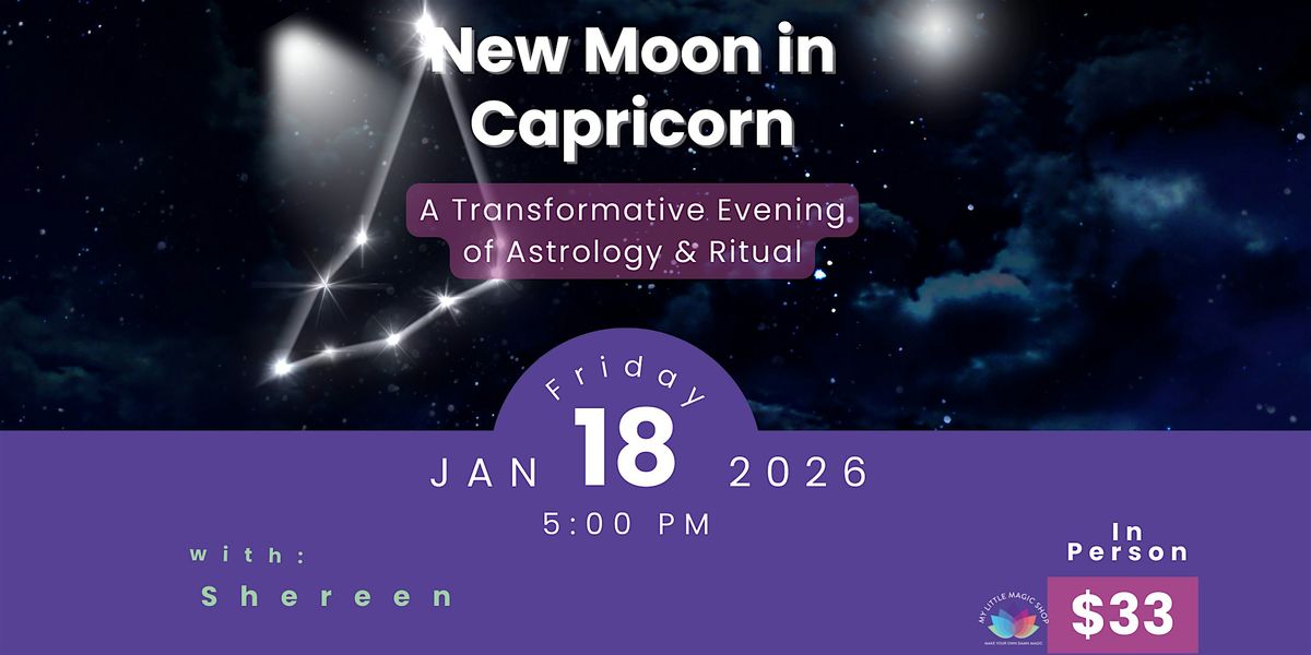 In this 90-minute in-person workshop, Shereen guides you through an illuminating blend of astrology, reflection, and ritual. You’ll learn how this lunar cycle shapes motivation, discipline, and new beginnings. Together, we’ll explore your chart, identify where Capricorn is activating your life, and uncover your personal invitations for the month ahead.