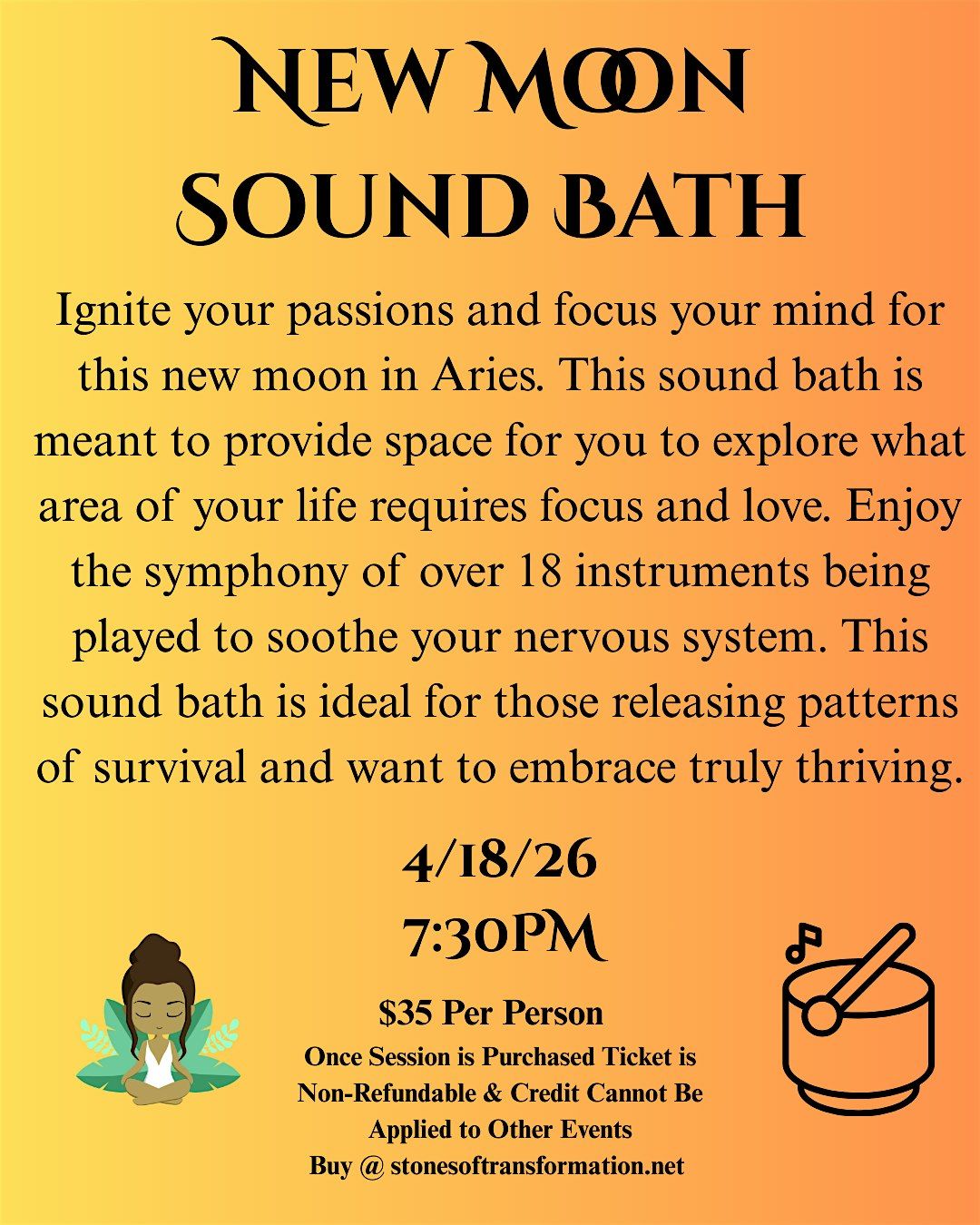 Ignite your passions and focus your mind for this new moon in Aries. This sound bath is meant to provide space for you to explore what area of your life requires focus and love. Enjoy the symphony of over 18 instruments being played to soothe your nervous system. This sound bath is ideal for those releasing patterns of survival and want to embrace truly thriving.
