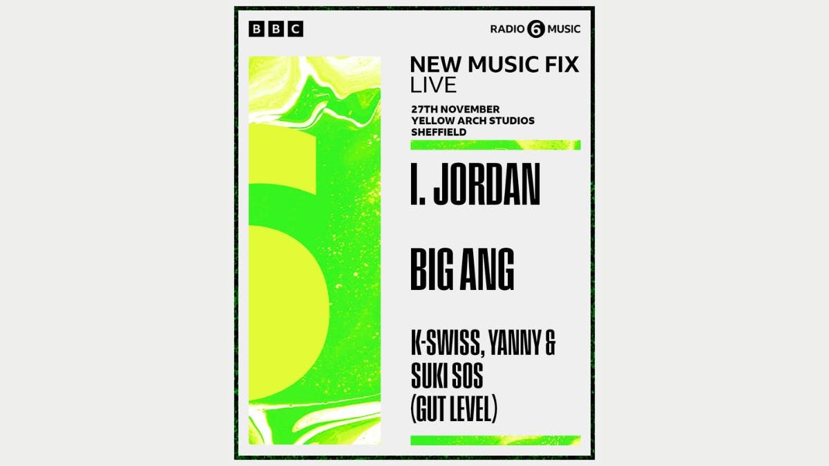 BBC Radio 6 Music is hosting a one-off gig in SheffieldOn Thursday 27th November, Nathan Shephard and Deb Grant bring New Music Fix Live to Yellow Arch Studios in Sheffield, where I. JORDAN, Big Ang and Gut Level DJs (K-Swiss, YANNY, Suki SOS) will perform live in front of an audience of 6 Music listeners.