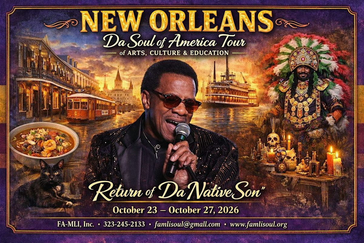 Experience the Heart & Soul of New Orleans: DA SOUL OF AMERICA TOUR 2026 "Return of Da Native Son" An Unforgettable Journey of Arts, Music, Education & Culture | October 23–27, 2026
