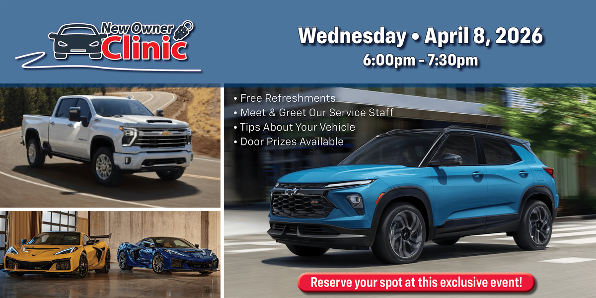 Join us on April 8, 2026 for our spring time New Owner Clinic! This is the opportunity to learn all about your new Chevrolet!