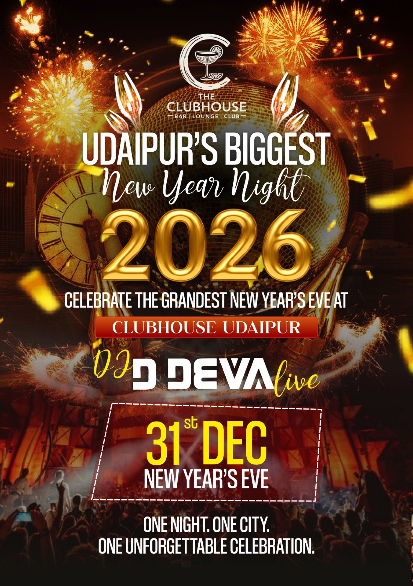 Step into a world of glamour and excitement at the NEW YEAR EVE GRAND CELEBRATION hosted by THE CLUB HOUSE! Get ready to ring in the New Year in style at the most happening destination in Udaipur.