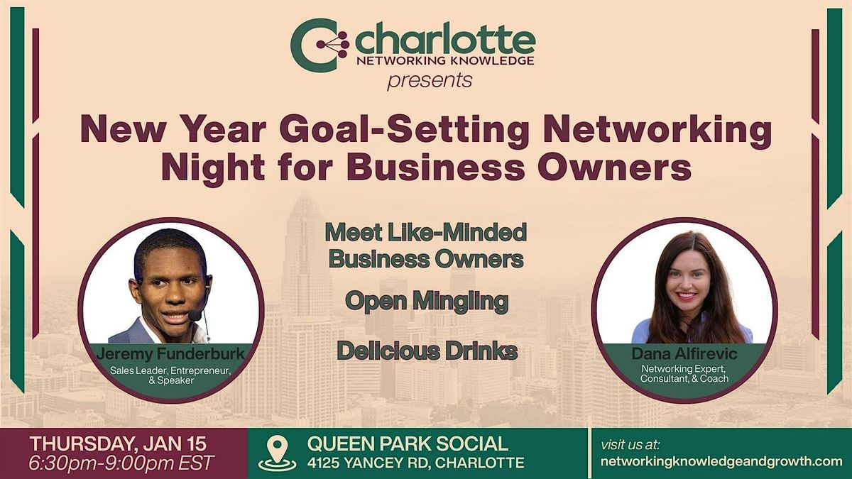 Kick off the new year with clarity, connection, and momentum at our New Year Goal-Setting Networking Night on Thursday, January 15th, from 6:30 to 9:00 p.m. at Queen Park Social, 4125 Yancey Rd, Charlotte, NC 28217.
