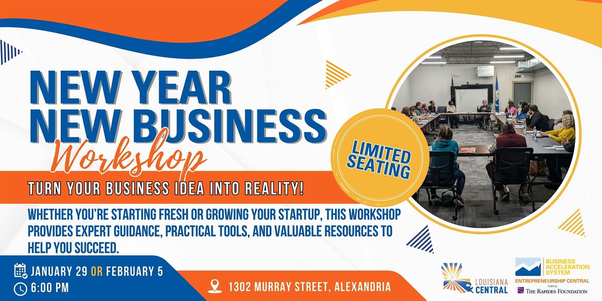 Business Acceleration System's New Year, New Business Workshop is designed to help aspiring and early-stage entrepreneurs in Central Louisiana start or grow a small business with clarity and confidence.