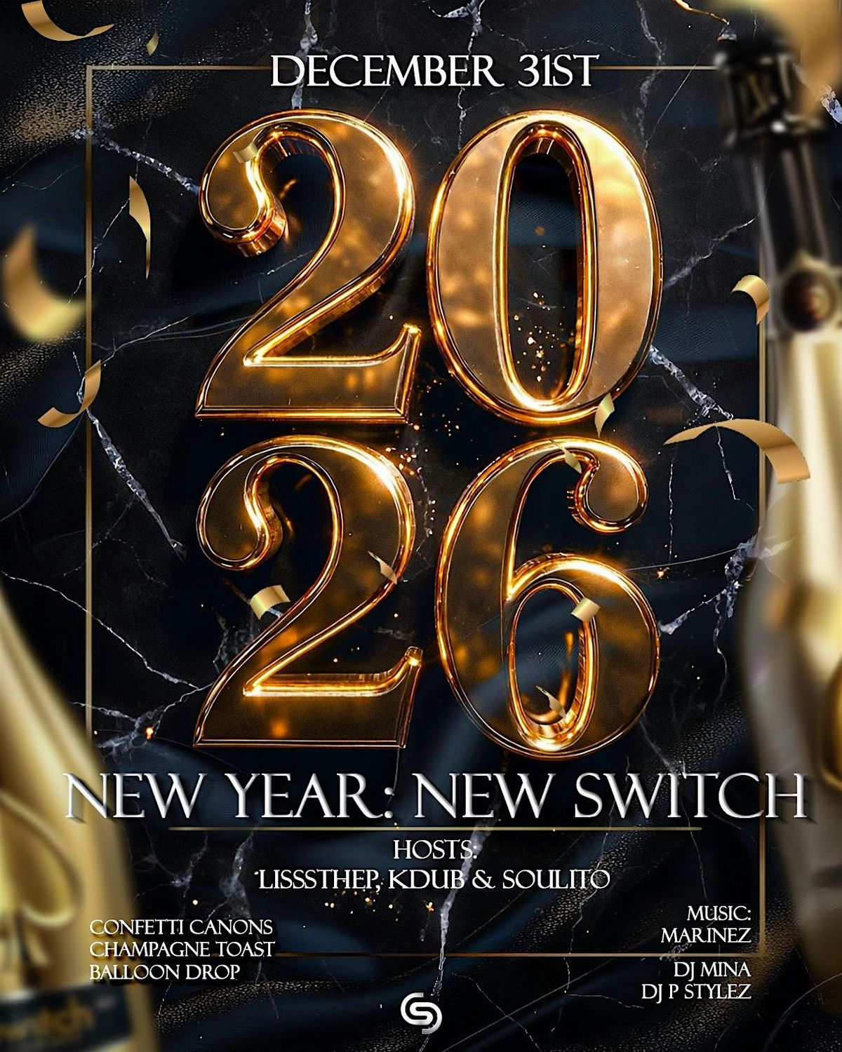 Come join us at Switch Lounge and Nightclub for the ultimate New Year's Eve party! Get ready to ring in 2026 with a night full of music, dancing, and good vibes. Let's welcome the new year in style at the hottest spot in town. Don't miss out on the fun - mark your calendars and get ready to celebrate with us!