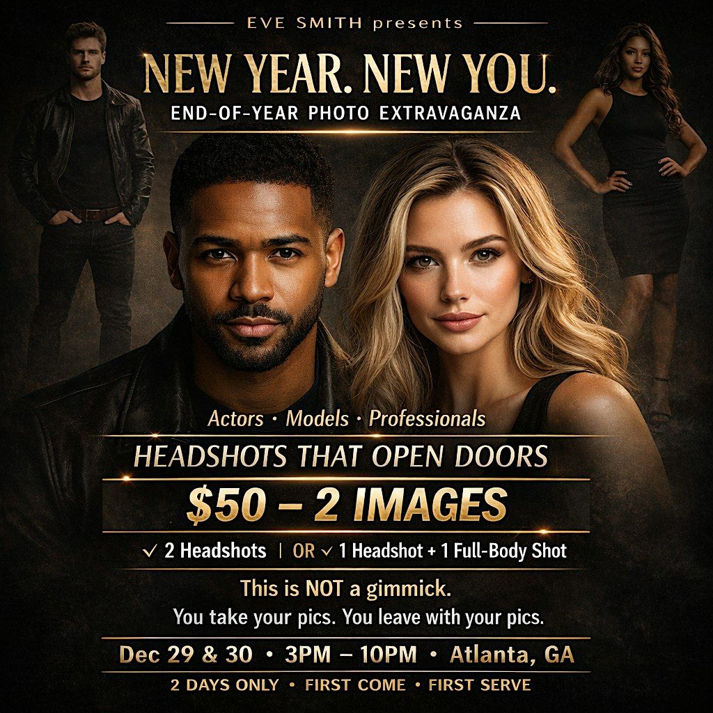 Eve Smith presents a two-day End-of-Year Photo Extravaganza designed for actors, models, and professionals seeking clean, elevated, industry-ready photography before 2026.