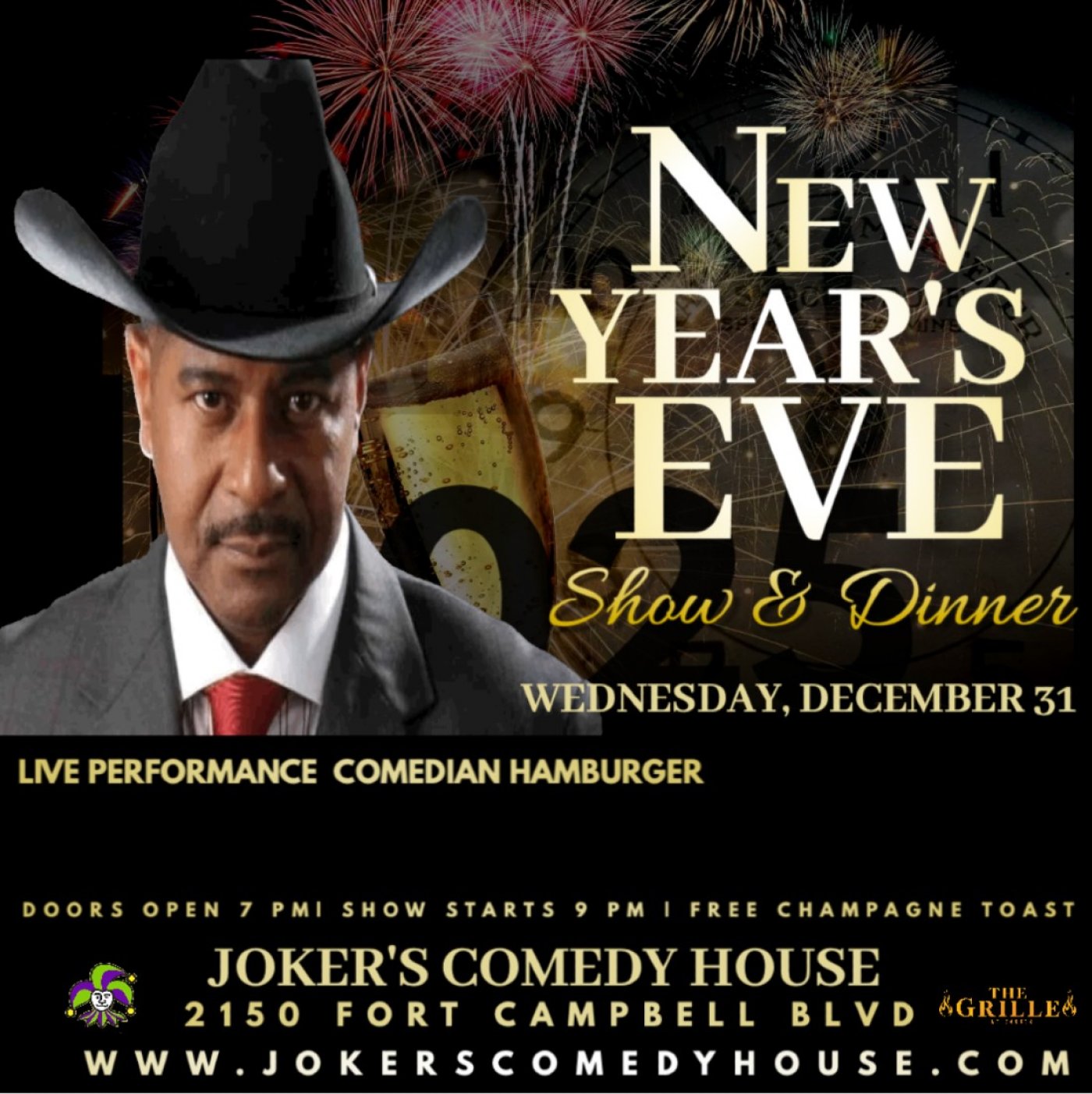 Celebrate New Year’s Eve with Joker’s Comedy House and the hilarious Comedian Hamburger, bringing his high-energy, crowd-favorite comedy to Clarksville for one unforgettable night!
