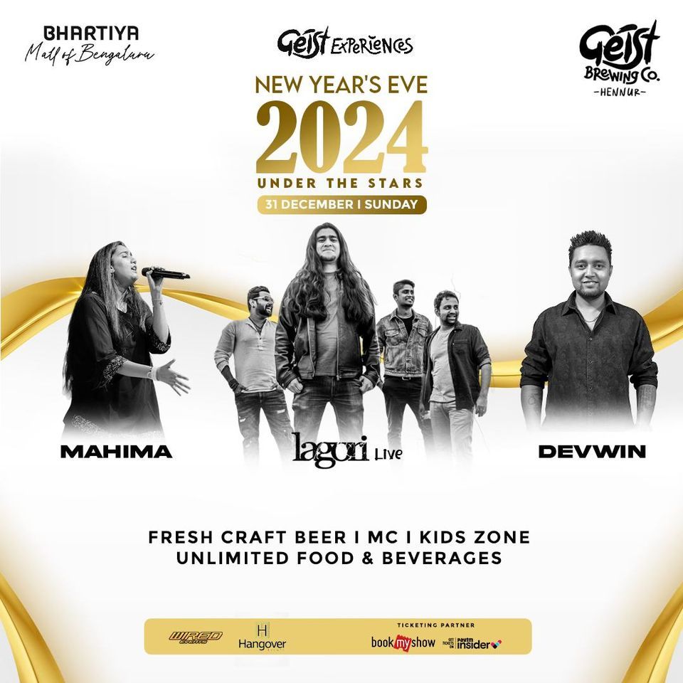 Join the ultimate New Year's Eve Party 'Under the Stars' at the Massive GEIST Brewing Co., at the Luxurious Bhartiya City (Hennur) with unlimited FNBFeaturing India's famous Indie bands @lagorimusic making it Bangalore's Biggest & ONLY LIVE CONCERT on NYE!