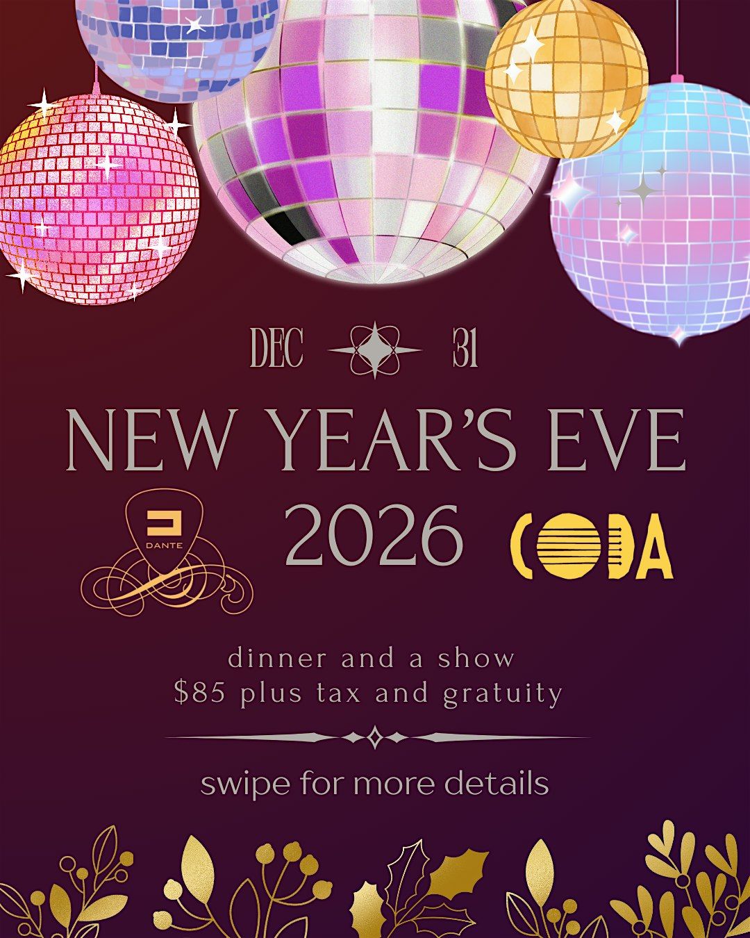 8pm dinner at DANTE NEXT DOOR - 10pm show in Coda