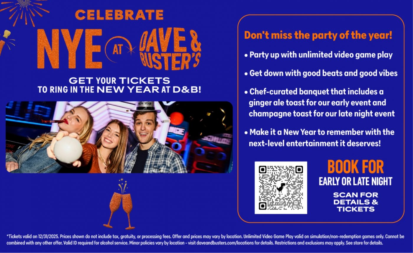 Ring in 2026 at Dave & Buster's, the ultimate New Years Eve Party Venue