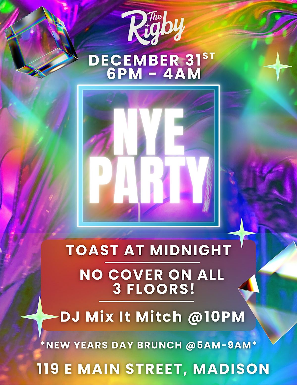 Ring in 2026 at The Rigby! Join us Dec 31 • 6PM–4AM for our NYE Party — no cover on all 3 floors!