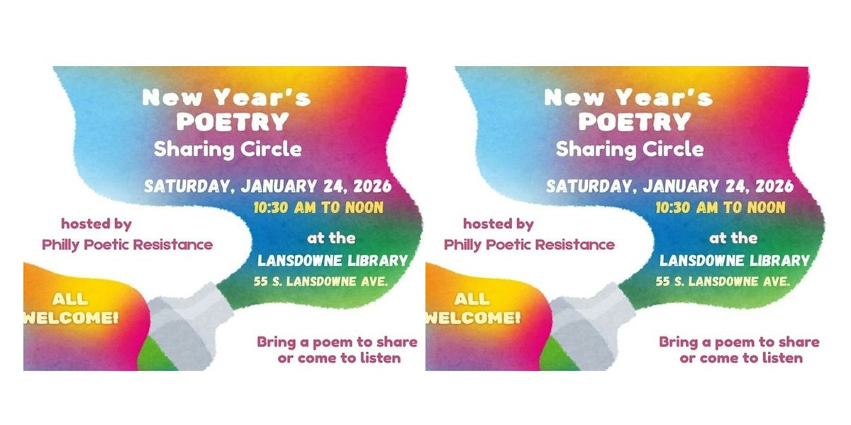 Weather information: As long as the library is open on January 24, 2026, we will be holding this event. If the library closes due to weather, we will send an email to our regular Philly Poetic Resistance email list and to anyone who signs up on Eventbrite saying we are unable to gather.