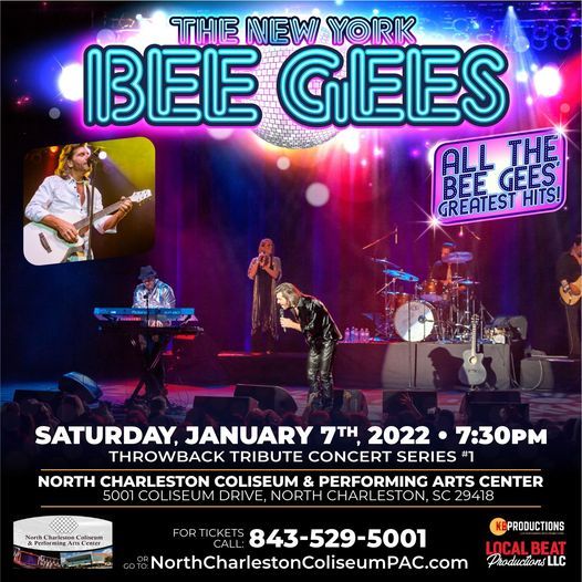 New York Bee Gees LIVE kicks off the 2022 Throwback Tribute series presented by KBProductions and Local Beat Productions LLC. This four concert series will be held at the North Charleston Performing Arts Center.The New York Bee Gees Tribute Show is comprised of some of Long Island New York’s most versatile and exceptionally talented players. The band includes present or former members of well known, world renown acts including The Alan Parsons Project, Happy Together Tour, Meatloaf, Queen, Blue Oyster Cult, Riot, Herman’s Hermits, Enrique Iglesias, The Rippingtons and more.