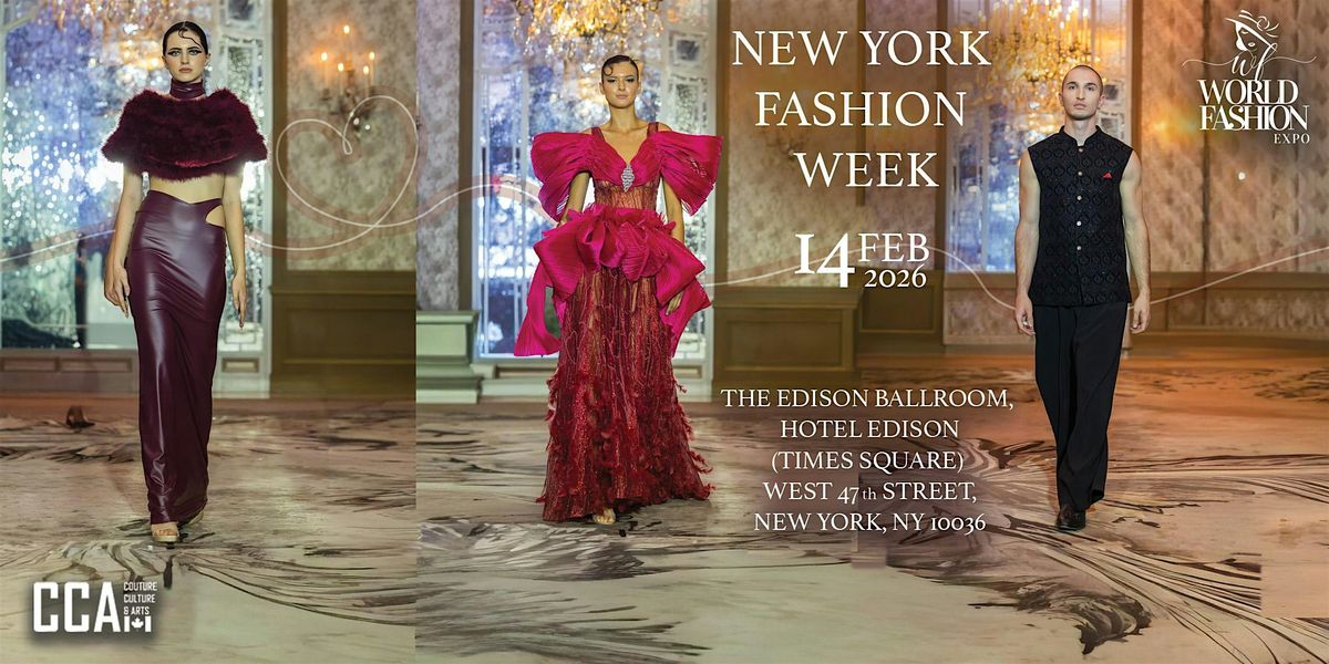 NEW YORK FASHION WEEK by World Fashion Expo is finally here! Get ready to witness the latest trends and designs at The Edison Ballroom on February 24, 2026 at 4:00 PM (Eastern Time). Join us for an unforgettable experience filled with glamour, style, and creativity. Don't miss out on this opportunity to be part of the fashion extravaganza of the year!
