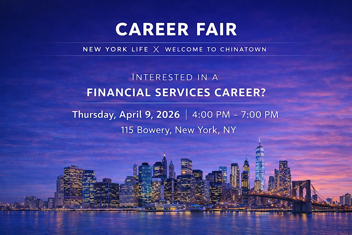 Interested in exploring a career opportunity in the financial services industry? Join New York Life Manhattan General Office and Welcome to Chinatown for an exciting career fair highlighting opportunities in financial services, including the potential to grow into management roles*. Whether you're considering a career change or seeking a path with potential β this event is for you.