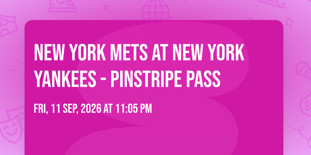π Location: 40.8296, -73.9262π Journey into wonder at New York Mets at New York Yankees - Pinstripe Pass, where extraordinary experiences await around every corner! ποΈ Set against the backdrop of Yankee Stadium in dynamic Bronx, NY, this event promises to exceed all expectations. π Join us on September 13th, 2026 at 05:35 PM for a celebration that combines innovation, entertainment, and community spirit in perfect harmony. β¨ There will be an atmosphere where memories are made and stories come alive, ensuring every guest experiences something truly remarkable. π This is more than just an event; it's a journey into the extraordinary!