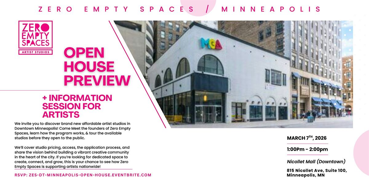 Zero Empty Spaces is coming to Downtown Minneapolis, and we are inviting local artists to preview a new creative studio space before it opens to the public!