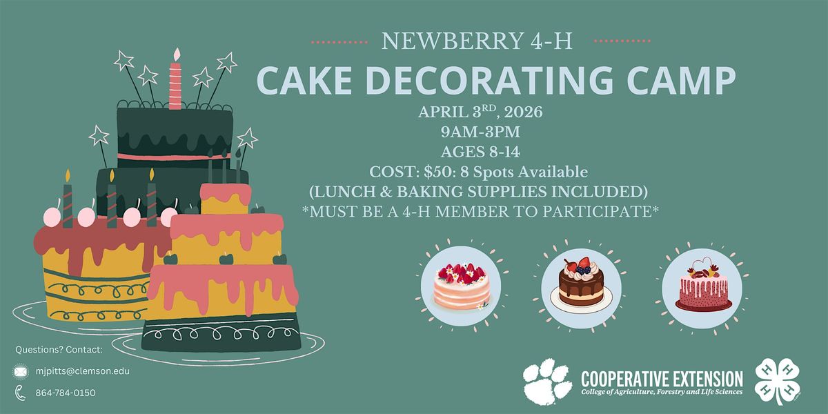 Calling all creative bakers! π Join us for a sweet and hands-on day at the Newberry County 4-H Cake Decorating Camp!