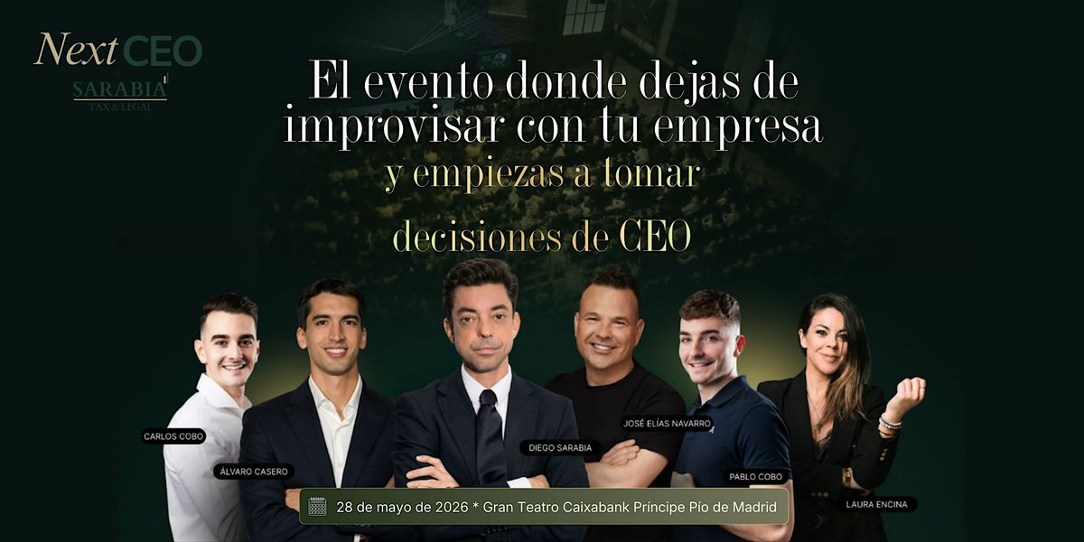 NEXT CEO by Sarabia es el punto de encuentro en Madrid para CEO, founders y emprendedores que quieren escalar con cabeza: más facturación, mejor fiscalidad, acuerdos estratégicos y acceso a capital.