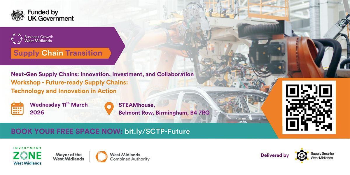 Next-Gen Supply Chains: Innovation, Investment, and Collaboration is a three-part workshop series designed for business leaders, innovators, and supply chain professionals across the West Midland’s most dynamic sectors —