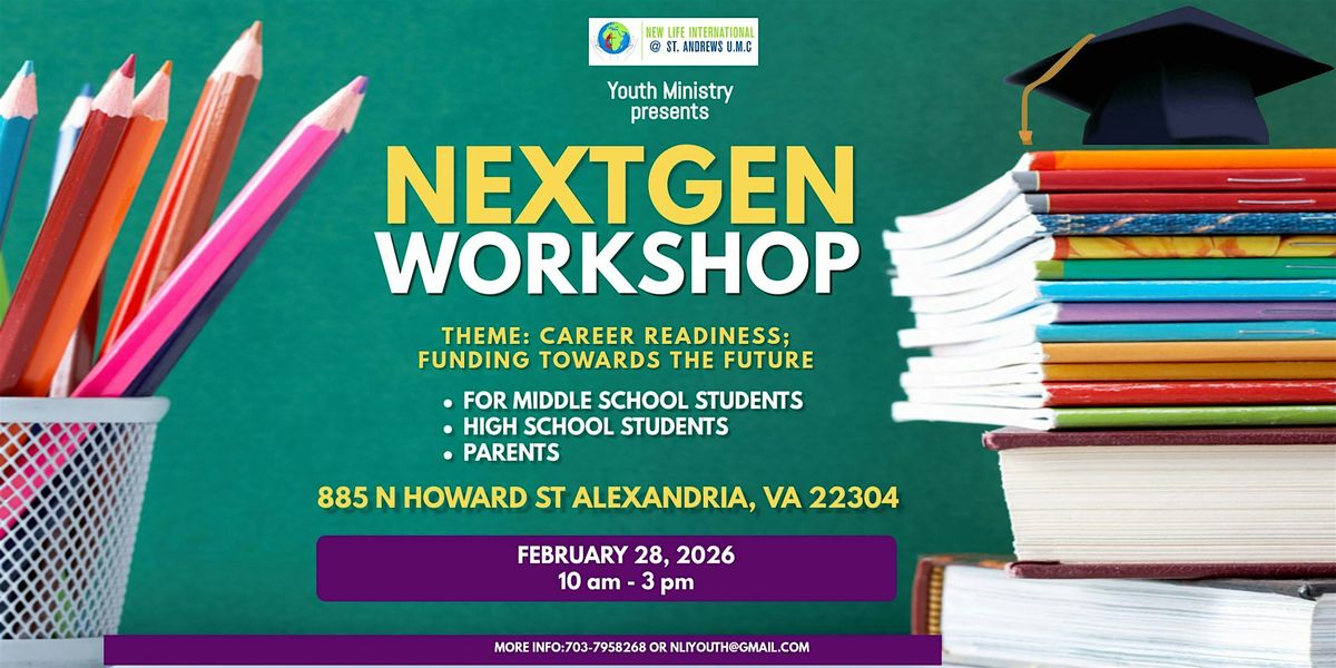 The New Life International Youth Ministry at St. Andrews UMC invites students and parents to our NextGen Workshop, a dynamic and informative event designed to prepare young people for the future.